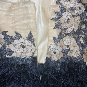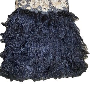 * Color: Champagne/Nude with Black Feather Skirt and Black Floral Embroidery