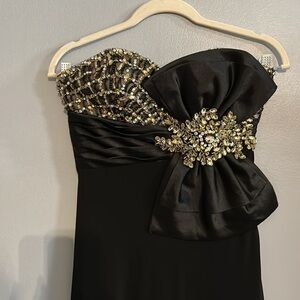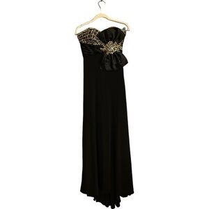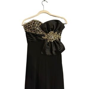 Terani Couture Black Strapless Beaded Evening Gown Size 0 Formal Prom Dress