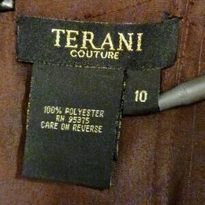 Terani Couture COCKTAIL DRESS Sz 10 Brozed Green Holiday Party ELEGANT Luxury