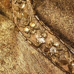The shoulder strap is intricately detailed with hand-sewn Simulated Diamonds, Crystals and Beads.