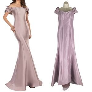 Terani Couture Floral Off Shoulder Long Gown Mauve Size 4 2021E2799
