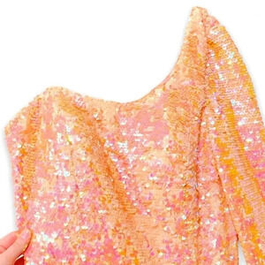 Terani Couture One Shoulder Sequined Cocktail Dress Peach Orange H1906 Size 10