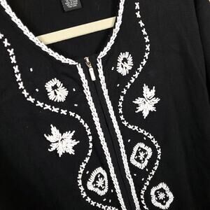 Gently used. Size extra large. Long sleeve black sweater with white beading. Crewneck.