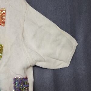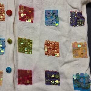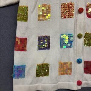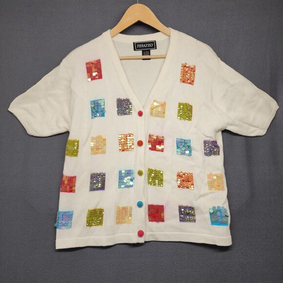 Terazzo Cardigan Sweater Womens Large White Short Sleeve V Neck Sequin Patchwork