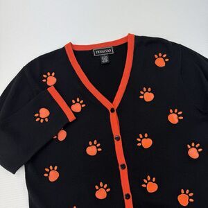 Terazzo Women’s Large Black Cardigan Paw Print Sweater Orange Trim Dog Cat