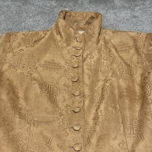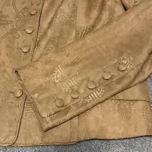Teresa Crowninshield Women 4 Jacket 100% Silk Lined Broacade Asian Inspired Gold