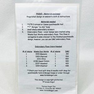 Teresa Kogut punch needle embroidery pattern/kit "Crow to Crow." Approx. finished size is 4.5" x 4.25". This kit does include the preprinted design on weaver's cloth and instructions. The supplies you will need to complete the project are a 3-strand punchneedle tool, 7" no slip hoop, small sharp embroidery scissors, embroidery floss. The kit is in new condition. No offers. Bundle for discount.