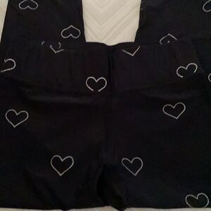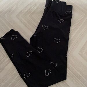 Terez Black High Waist Leggings with Silver Hearts. Silver hearts throughout. Thick high waist. Made of nylon and Lycra. Approx 27” inseam. Gently worn.
