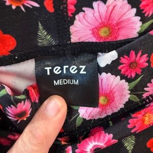 Terez - Black & Pink Floral Print Leggings, Size M