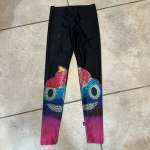 Gently worn Terez Rainbow Crystal Poop Emoji leggings girls size M. Shiny nylon material, elastic waist, rainbow rhinestone poop emoji on bottom of legs, skinny fit. Very good condition- some hard to see very small picks. Offers accepted!