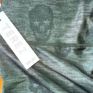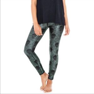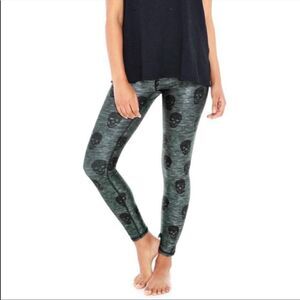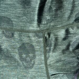 Dark green leggings with bold skull design. Soft and flexible fabric. Ideal for everyday style.