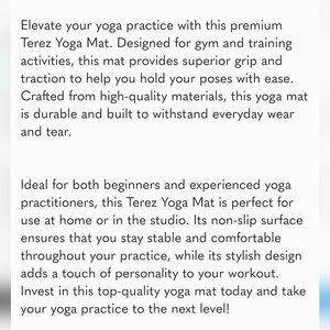 Introducing the Terez Yoga Mat, perfect for your next gym and training session. This high-quality mat is designed to provide you with a comfortable and non-slip surface, making it ideal for any type of physical activity.