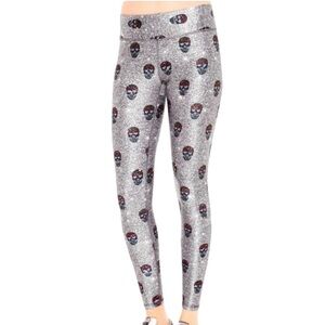 Terez Glitter Skull Athletic Leggings 7/8 Tights Women’s Medium