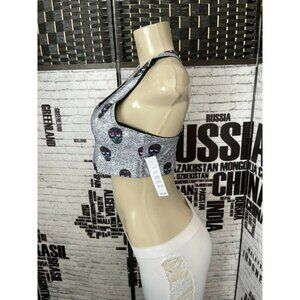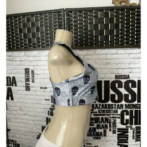 ITEM: Terez L Black Multi Skull Print Scoop Neck Racerback Sport Bra