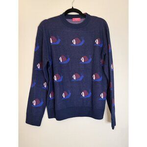 Elevate your style with the Terez Sweater in Blue with repeating Escargot (snail) print. This luxurious women's sweater is brand new and crafted for ultimate comfort and elegance. Perfect for any occasion.