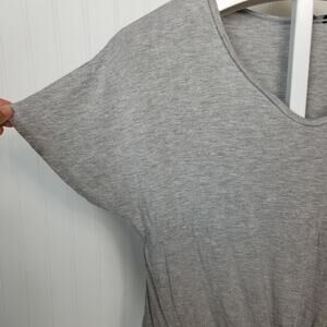 Gently used, no holes tears snags or stains. Terez gray, dolman sleeve short sleeve shirt. Tie front, v neck.