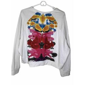 Terez Women’s Sz Large White Multicolor Inkblot Cropped Sweatshirt Athleisure