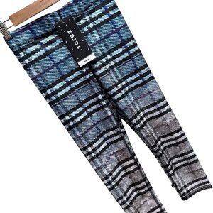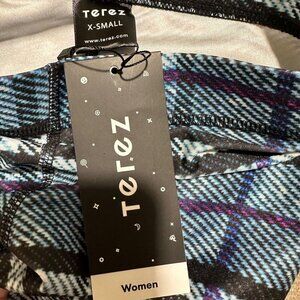 Terez Womens XS Blue Black Plaid Leggings NWT
