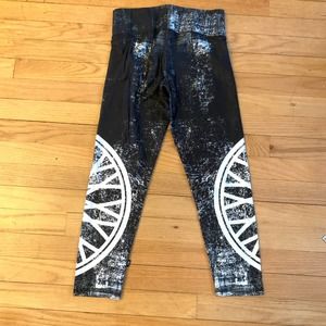 Terez for SoulCycle S Leggings Athletic Athleisure Cropped Capri Black Wheels