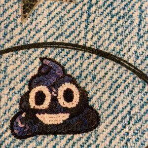 Terez Little Girls Denim with Patches Print Cropped Leggings. Made of polyester and spandex. Gently worn. Size L. VD