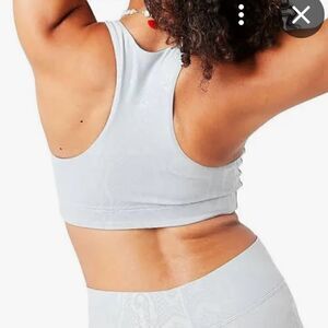 Terez foil snakeskin silver gray sports bra small s Saks Pilates barre yoga