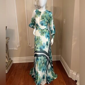 Teri JON Chiffon Floral Pleated Dress Gown Size 8