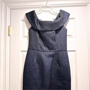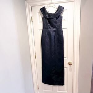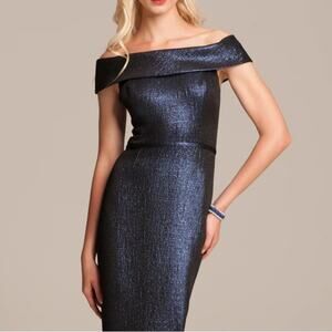 Teri John Ricky Freeman Formal Dress Off the Shoulder Long Size 4 Sapphire Blue