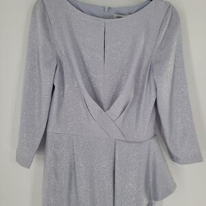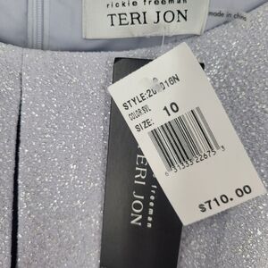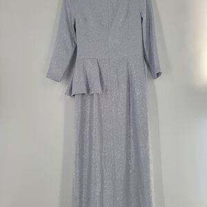 Teri Jon By Ricky Freeman Women’s Metallic Ruffle Gown Silver Size 10 New