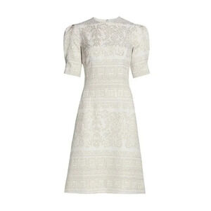 Turn heads in this enchanting fit and flare dress. The style is an ideal choice for the warmer months. Charming puff-sleeve dress adorned with intricate embroidery throughout the design.