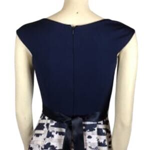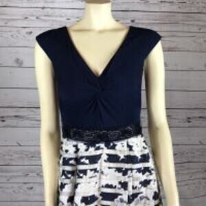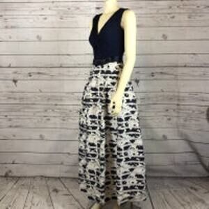 Teri Jon Knot front V-Neck Printed Navy & White Ball evening Gown dress size 2