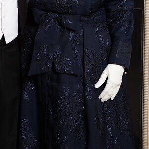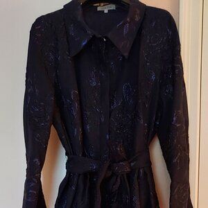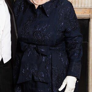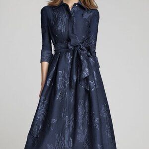 Teri Jon Navy Metallic Jacquard Shirtdress Gown, Size 22, with Floral Print