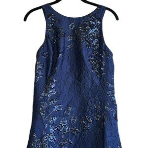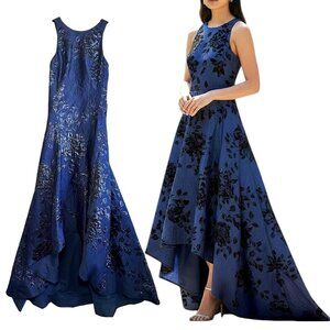 Teri Jon Rickie Freeman Blue Black Floral Jacquard High Low Gown Size 2 Dress