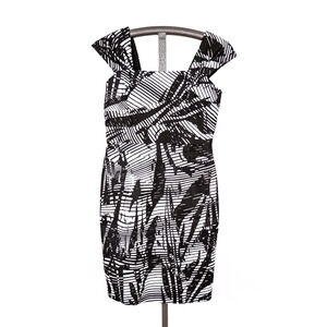 Pre-Owned (Excellent Condition): Teri Jon Rickie Freeman Classic Sheath Dress; Women's Size 8; Cotton Blend: 76% Cotton, 24% Viscose; Zip Closure; Career Classic Capsule Abstract Day to Night