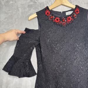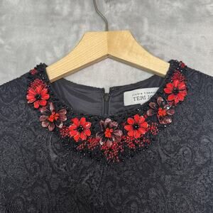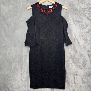 Teri Jon Rickie Freeman Dress Womens 4 Black Beaded Floral Cold Shoulder Sheath