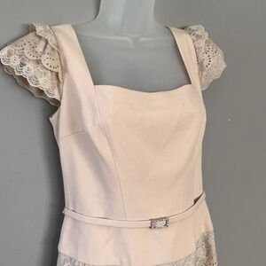 Teri Jon Rickie Freeman Pink Ruffle Lace Belted Sheath Dress Sz 6 Formal Spec Oc