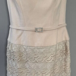 Teri Jon Rickie Freeman Pink Ruffle Lace Belted Sheath Dress Sz 6 Formal Spec Occasion