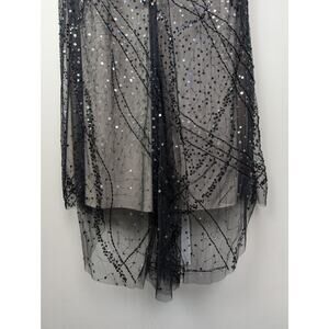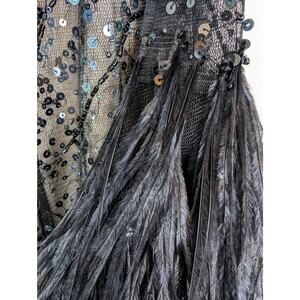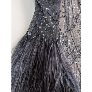 Teri Jon Rickie Freeman Sequin Overlay Formal Dress w/ Feathers Black 4
