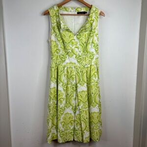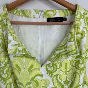 Teri Jon Rickie Freeman Sleeveless Dress 14 Green Print Preppy Old Money Spring