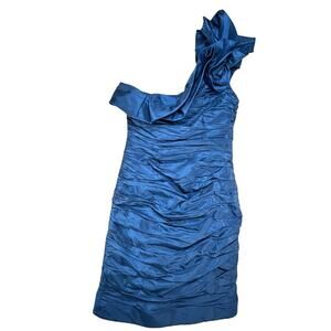 Teri Jon by Rickie Freeman Asymmetric Bodycon Mini Dress Size 2 Blue Silk HOCO