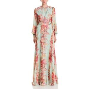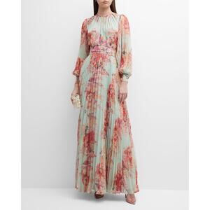 Teri Jon by Rickie Freeman Floral Print Pleated Dress Multi Size 4 0676