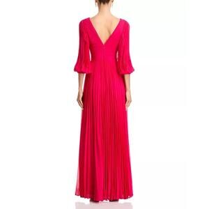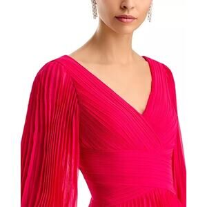 Teri Jon by Rickie Freeman Fuchsia Chiffon Pleated V-Neck Long Sleeve Gown 18