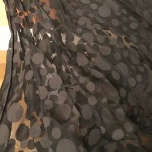 Worn once, Teri Jon by Rickie Freeman gown still in Saks Fifth Avenue hanger bag. Gorgeous formal gown. Sleeveless, jewel neckline, black underslip with stunning dot patterned overlay, tied at the waist with a satin sash. Really a beautiful, timeless dress. Discounted shipping.