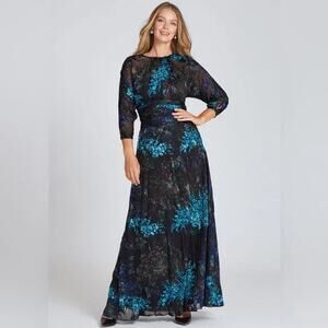 Teri Jon by Rickie Freeman Womens Blue Black Floral Chiffon Velvet Ball Gown 8