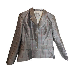 Gorgeous Teri John for Ricky Freeman Blazer and skirt set. Black, white, and red. Made with a satin feeling 100% silk.
