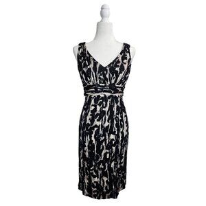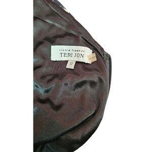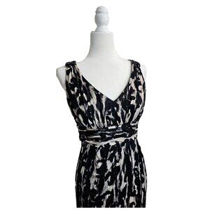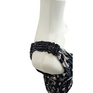Teri Jon rickie freeman black & gray beaded straps empire midi satin dress size