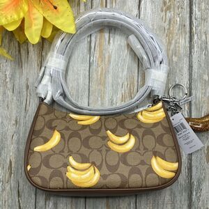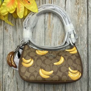 Teri Shoulder Bag In Signature Canvas With Banana Print & Charm Crossbody Purse