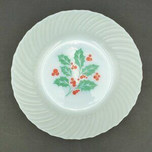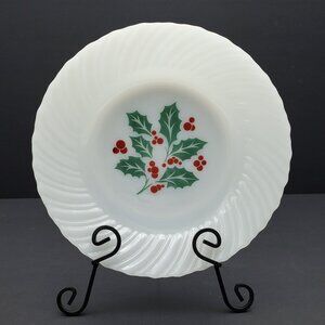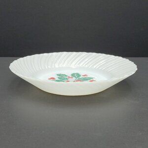 Termocrisa Holly Berry White Milk Glass Christmas Bowls 7.5" White Swirl Edge
