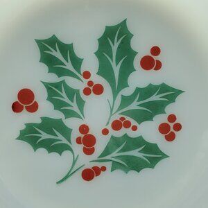 Termocrisa Holly Berry White Milk Glass Christmas Bowls - Set of 4. Excellent pre-owned condition. 7.5" x 1.25" milk glass bowls with a swirled edge and holly leaves & berries holiday pattern.