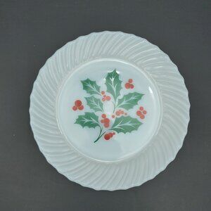Termocrisa Holly Berry White Milk Glass Christmas Luncheon Salad Plates 8.75"