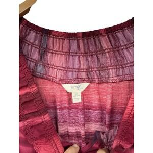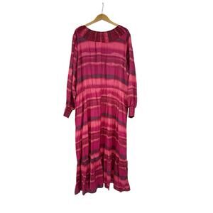 Terra And Sky Red Pink Stripe Modest L/S Midi Maxi Dress Womens Plus Size 3XL